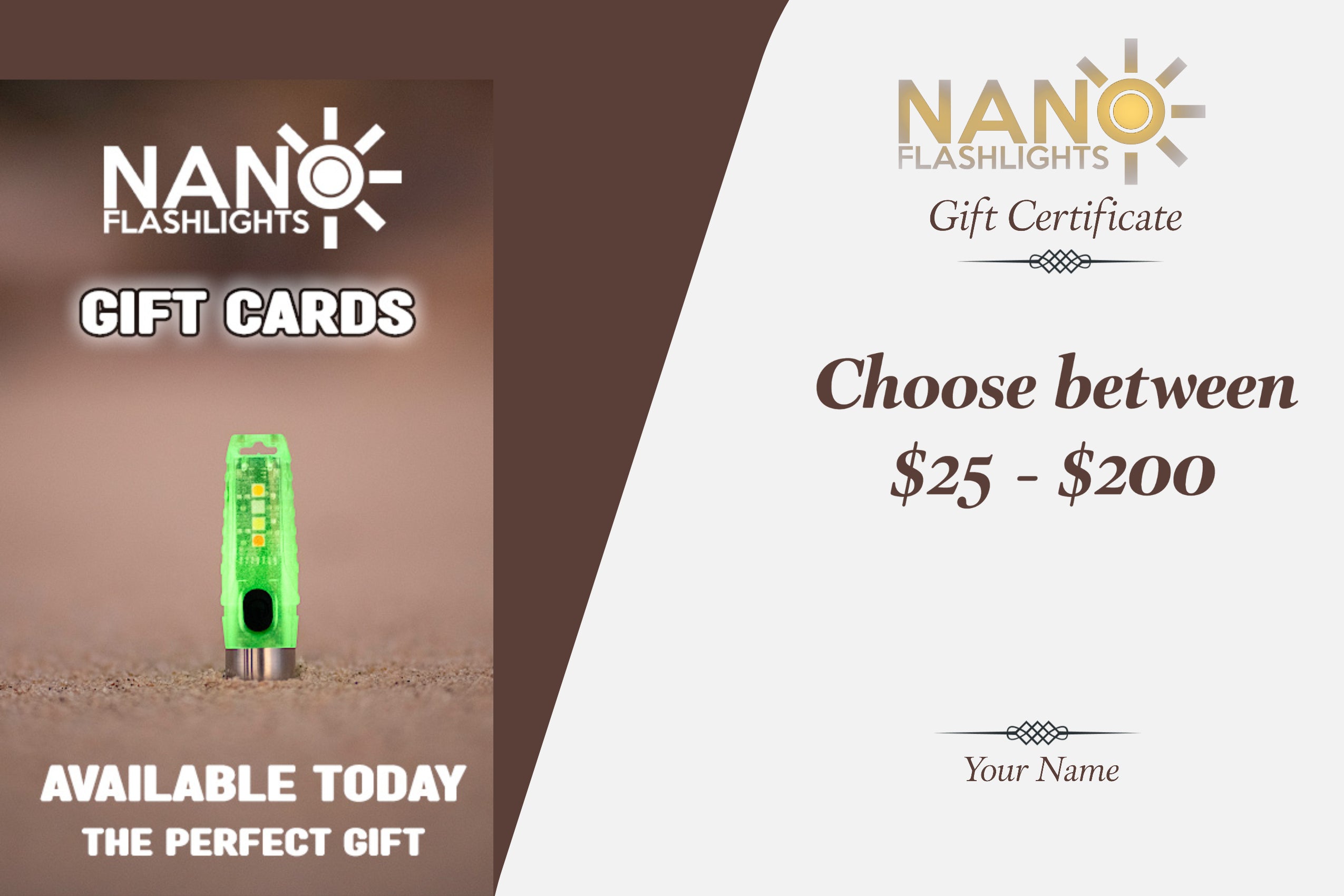 Nano Flashlights Gift Cards come in the following denominations -
